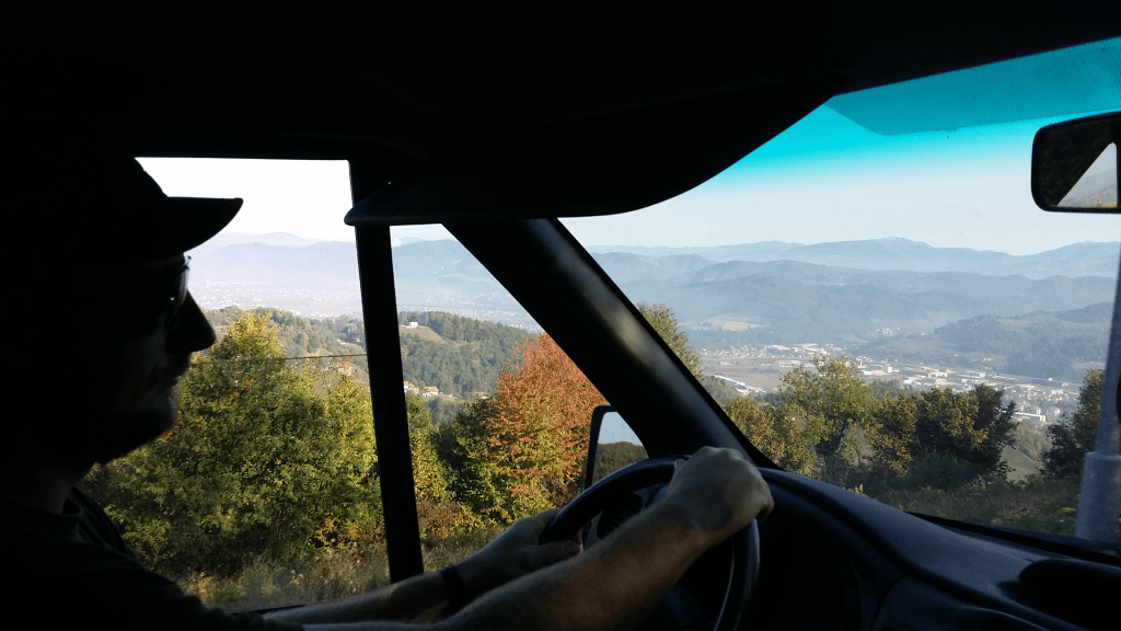 Vi hade hyrt en bil, eftersom vi anlände några dagar tidigare till Bosnien och vi landade i Tuzla, då WizzAir flyger billigt och direkt mellan Göteborg-Tuzla, så vi åkte inte med minibussen varje dag. Vi märkte ganska snabbt att det var skönt att åka till utgrävningarna vid Ravnetunnlarna med egen bil, för då kunde man stanna där och meditera i tunnlarna efter utfört arbete och åka hem eller någon annanstans när man kände för det istället för att skjutsas till hotellet direkt efter lunch.