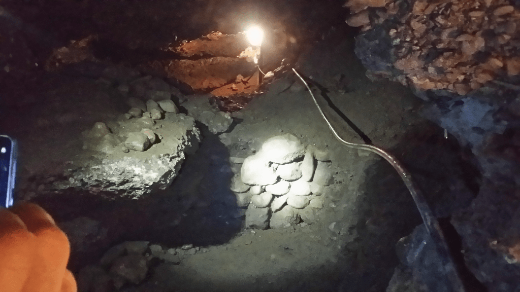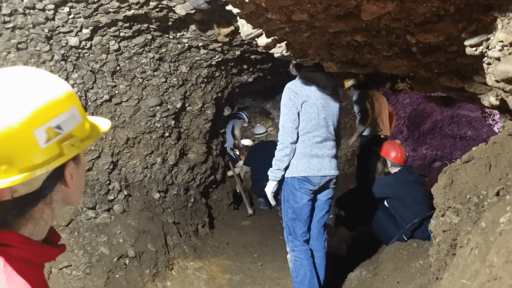 Ungefär så här ser det ut inne i tunnlarna ”Ravne 3” som vi utforskade. Ingången hade hittats i mitten av 2018. I Ravne 3 har volontärer redan funnit tusentals fornlämningar från medeltiden, antiken och stenåldern.