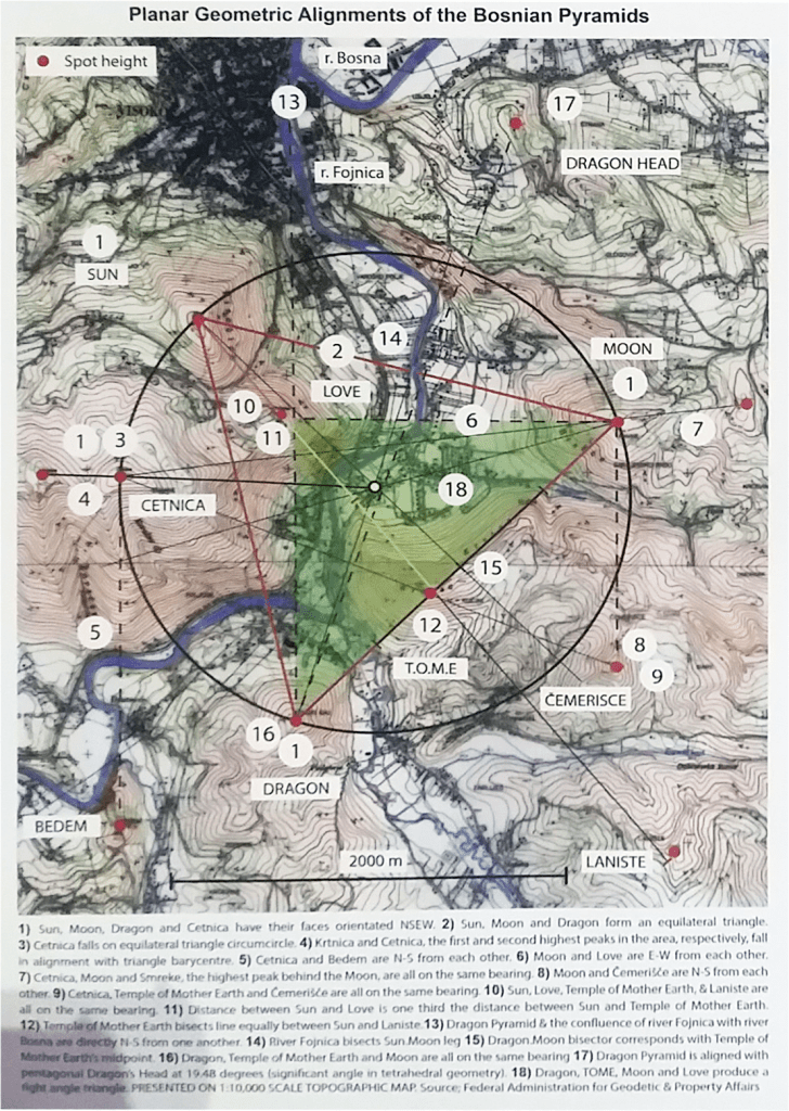 Den största av pyramiderna man hittat i Bosnien, Solpyramiden, är sedan 2017 bekräftad minst 270 meter hög. Den kan vara så hög som drygt 360 meter enligt en studie. På grund av att myndigheter och etablissemang av förståeliga skäl – det ifrågasätter hela den historieskrivning de serverar oss – vill sätta käppar i hjulen vet man ännu inte hur långt ner solpyramiden börjar, då man i princip måste äga marken för att få göra utgrävningar.