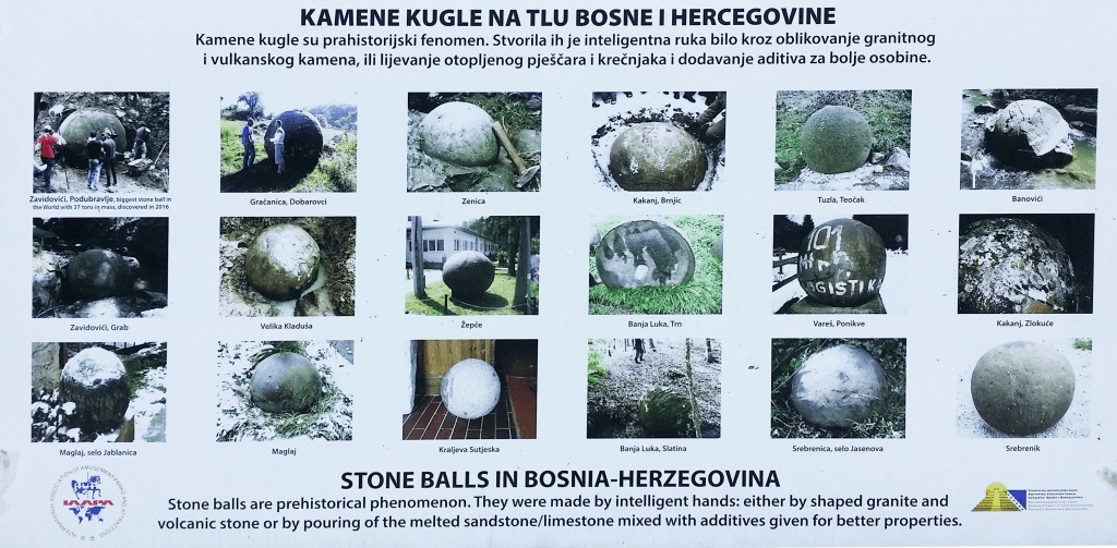 Spridda lite överallt i Bosnien finns gamla stensfärer. I Stensfärsparken utanför Zavidovići hittades på 30-talet ett 80-tal stora stensfärer. Vid undersökning av kompositionen av stensfärerna fann man att de innehöll mangan och kalciumkarbonat, tillsatt för att hålla ihop dem bättre. De innehåller även kvarts, känt bland annat för sina piezoelektriska egenskaper.