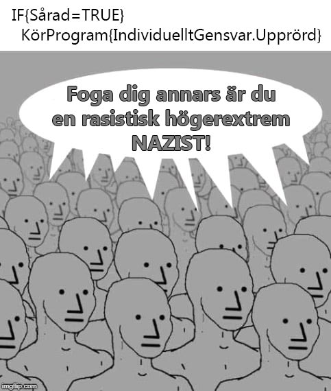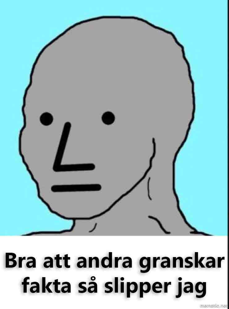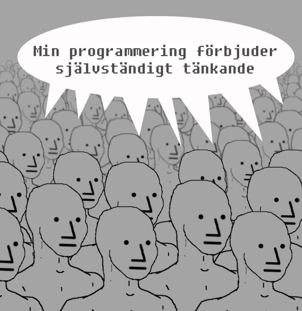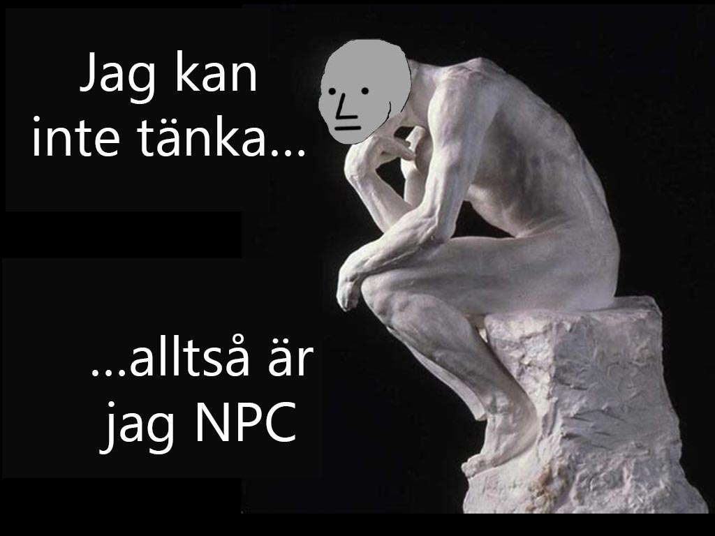 Vad är NPC-memes? Det är en reaktion från självständigt tänkande individer mot att i åratal ha kallats saker som rysk bott, rasist, konspirationsteoretiker eller på senare tid även neologismen klimatförnekare för att man har mage att säga någonting som inte är politiskt korrekt eller utanför den ram makten programmerat oss att tänka inom.