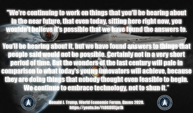 21 till 24 januari ägde också World Economic Forum rum i Davos, Schweiz. Trump var en av talarna. I sitt tal antydde han att disruptiv ny teknologi snart skulle komma att offentliggöras. Kan det ha något att göra med det som nämnts i detta blogginlägg?