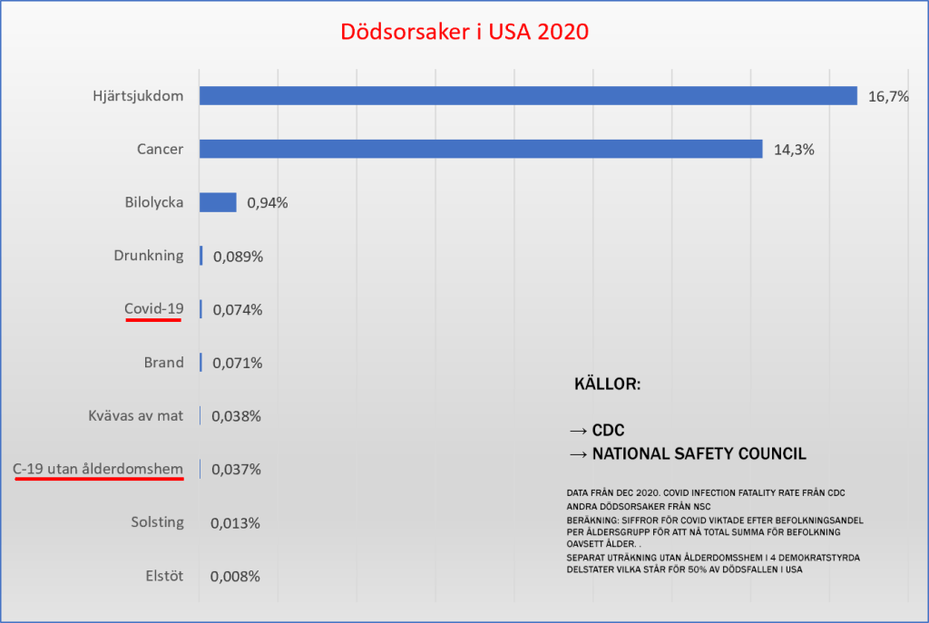 Om guvernörerna ovan inte fattat samma katastrofala beslut som man gjorde i Sverige hade det även varit större sannolikhet att dö av brand och att kvävas av mat än att dö av covid-19.
