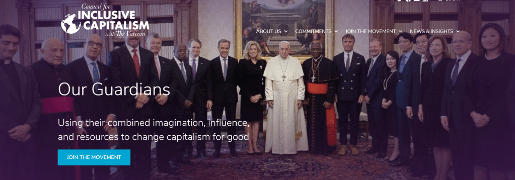 ”Inkluderande kapitalism” kallar de det nya ekonomiska systemet. Bakom ligger familjen Rotschild och Rockefeller foundation tillsammans med Vatikanen och Påven i spetsen (!)
