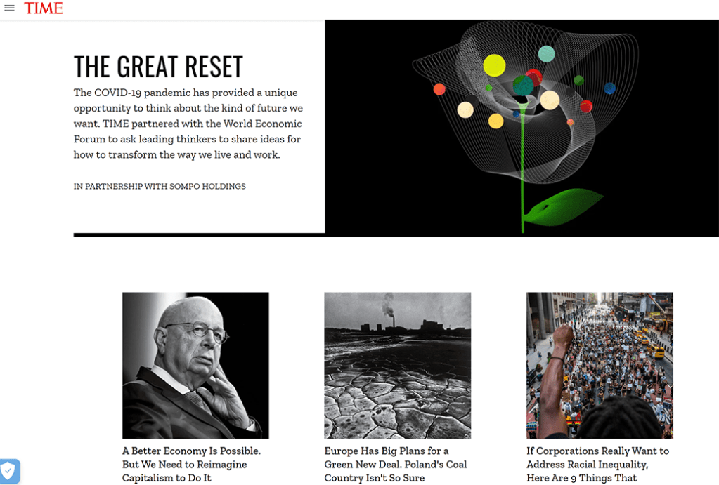 Time har sedan i somras haft en hel avdelning ägnad åt att hypa The Great Reset, klicka här.