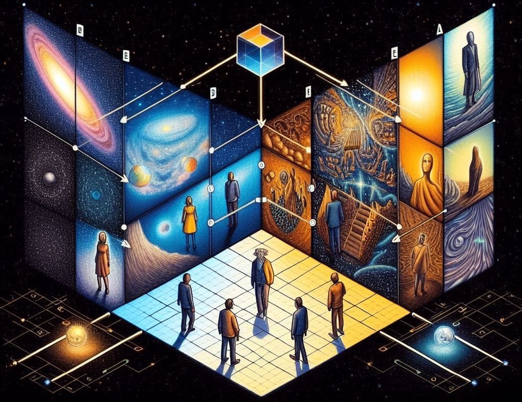 Som att det vill antyda att vi befinner oss i en Matrix med obegränsat många dimensioner. I den råder dualitet så att vi vägleds att antingen se oss som vänster eller höger. Det är dock ingenting man behöver göra, för allt är bara en projektion. Vi har en identitet, som gör det möjligt för oss att undvika den successiva elimination dualiteten leder till. Vi kan istället se vårt egenvärde och välja att transformera oss; ta oss till högre och högre dimensioner och finna en ny jämvikt där, där zero point energy hör till vardagen och vi vet att vi alla är förenade i nolldimensionen utanför tid och rum.