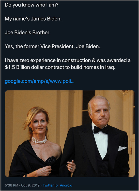 - Joseph Robinette Biden Jr.: före detta vicepresident i USA under Obama och nuvarande president i USA sedan statskuppen cementerades i januari 2021.