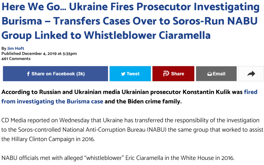Tajmingen kan man också lägga märke till, med tanke på att Durhams rapport nyligen kom ut, och det även nyligen framkommit dokument från FBI som visar på att Biden tog en en muta på 5 miljoner dollar från en chef för Burisma. Samma dag som Trump åtalades introducerades också en artikel om riksrätt mot Biden efter anklagelse om att tillsammans med sin drogmissbrukande och prostitutionsberoende son ha tagit emot motsvarande ca 100 miljoner kronor i mutor från ert korrupta oljebolaget Burisma i Ukraina, där sonen satt i styrelsen för att utnyttja faderns inflytande. Men det tas inte upp av etablissemangets media. Enligt en rapport från Media Research Center täckte mainstreammedia Trumps åtal med 291 minuter, men Bidens mutor fick 0 minuter. I informationskriget gäller det att hålla på ammunitionen till när den gör som mest nytta, i detta fall för att täppa till nyhetscykeln, och begrava den för Biden skadliga informationen med ytterligare grundlösa anklagelser mot Trump.