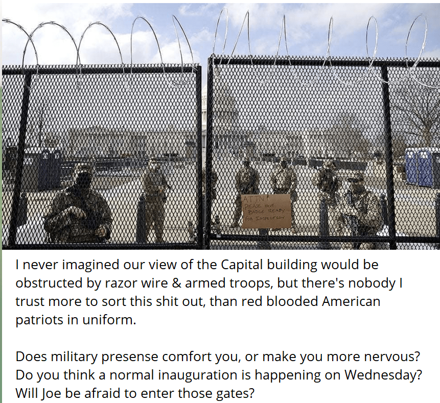 Det var händelser där det framkommit att FBI-agenter var drivande i den så kallade ”stormningen”. Alltså samma FBI som skyddade Hillary och gjorde en häxjakt på Trump. Händelser som aldrig hade ägt rum om Nancy Pelosi (representanthusets talman med ansvar för säkerheten i DC den dagen) hade tillåtit nationalgardet som Trump föreslog, eller om massan hade gjort som Trump sa och gått hem i fred istället för att följa provokatörerna från bland annat FBI och Antifa. Inte heller hade det hänt om de inte blivit insläppta av polisen.
