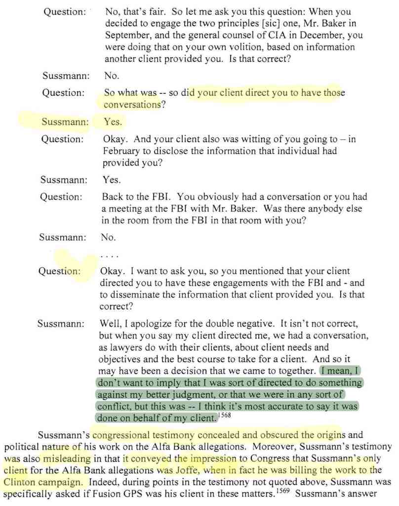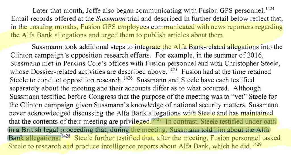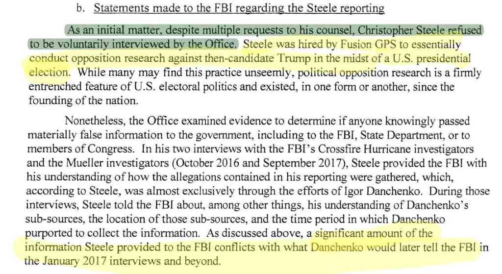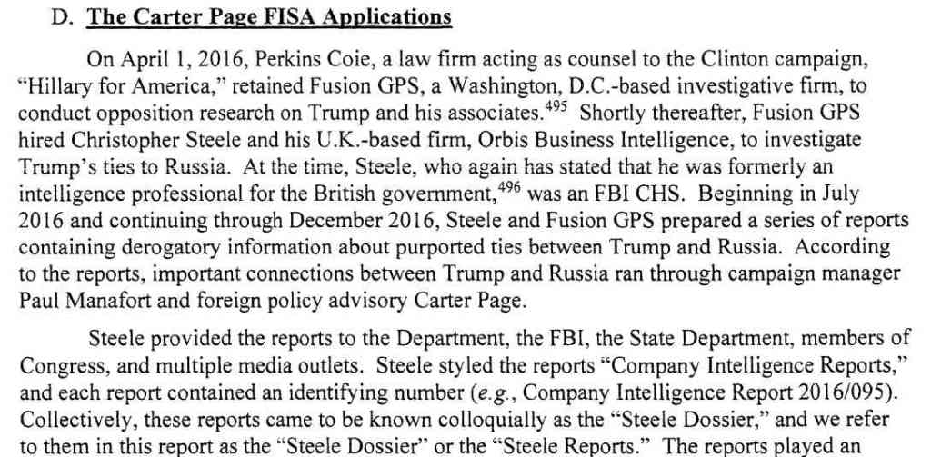 Här är avsnitt ur Durhams rapport som visar hur Steeles rapporter beställdes och betalades av Hillary Clinton och Demokraterna. Varje utdrag har en bildtext som summerar och kommenterar det.