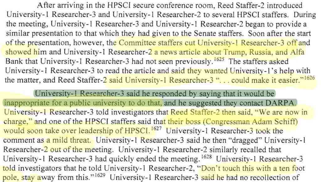 Med andra ord kände både president och vicepresident, samt cheferna för både FBI och CIA till att det var ett beställningsjobb från Hillary Clinton, men tog det som instruktioner för hur de skulle agera istället för att välja den ljusa vägen. CIA-chefen Brennan satt t.ex. i TV och ljög och sa att det finns starka och entydiga bevis för att Trump skulle vara i maskopi med Ryssland. Det gjorde även kongressledamoten Adam ”Pencilneck” Schiff (D).
