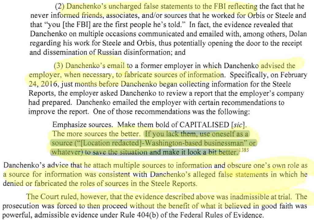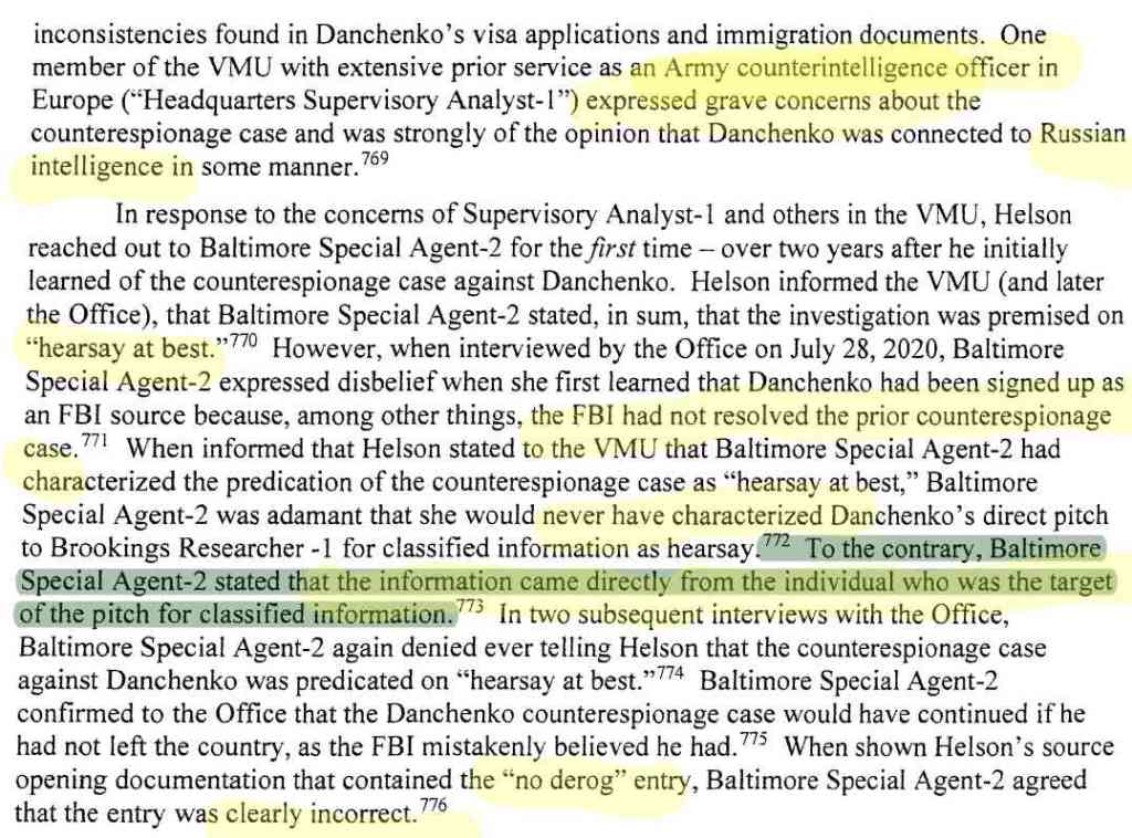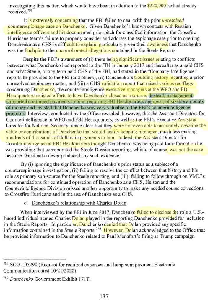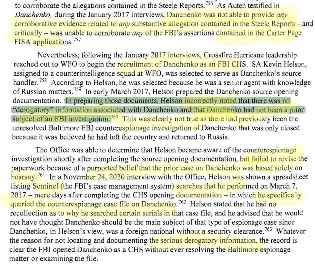 - Trots att Danchenko i intervju av FBI i januari 2017 inte kunde styrka några påståenden i Steeles rapporter, rekryterades han som en konfidentiell källa av FBI och fick rikligt betalt.