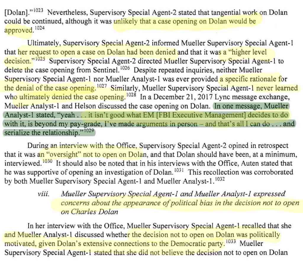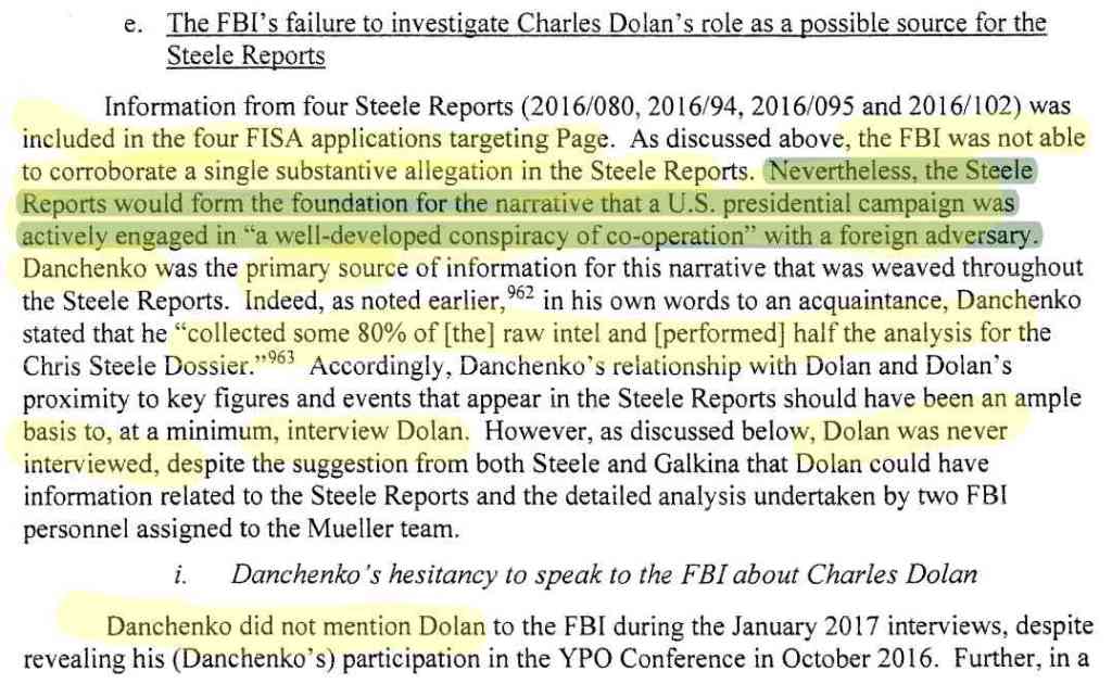 Den i Demokraterna engagerade Dolan, som var källa till många av påståendena i Steeles rapporter, genom att ha varit Danchenkos primära källa, verkar vara skyddad både av Danchenko och FBI:s ledning. Varför?