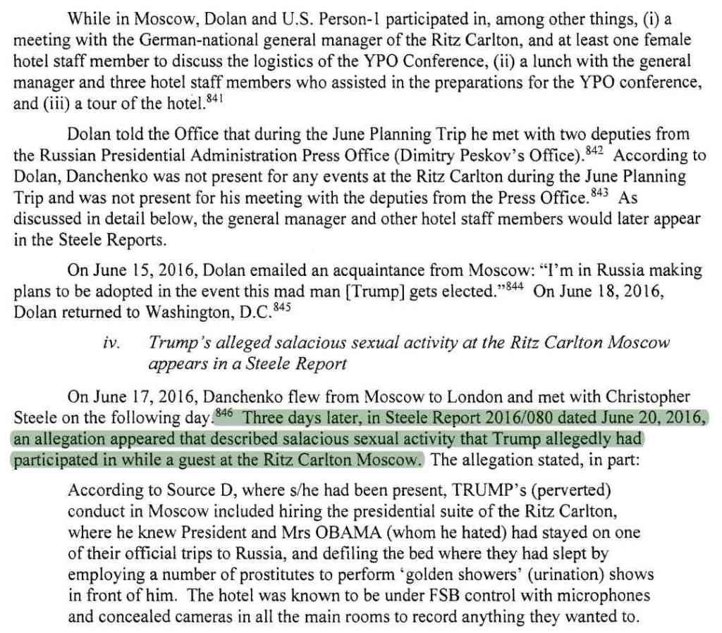Trump skulle enligt Christopher Steeles rapport (som ju beställdes av Hillary) ha varit väldigt kinky och hatisk mot Obama, med ett antal prostituerade i presidentsviten på Hotell Ritz Carlton i Moskva. Noll substans även för den svartmålningen.