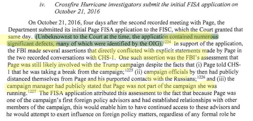 Foreign Intelligence Surveillance Act är en lag som reglerar insamling av information relaterad till utländsk säkerhetstjänst i USA och är tänkt att användas ytterst sparsamt. FISA-ansökan som skickades in av FBI om övervakning av Carter Page, som innan han felaktigt anklagades för samröre med rysk säkerhetstjänst hjälpte till med Trumps valkampanj, var ytterst felaktig, vilket vi kan se bland annat i dessa utdrag.