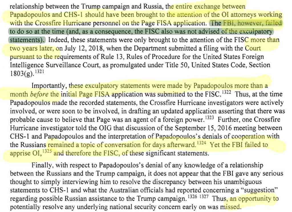 - FBI-personal förfalskade relevant information i sin ansökan om en FISA-order och ljög sedan avsiktligt och grovt för att kringgå kritiska krav för att förnya ordern om avlyssning.