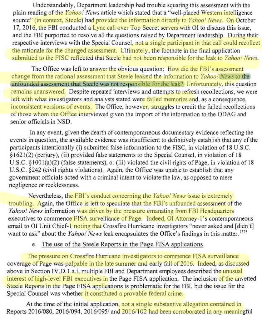 Media (folkets fiende nr 1) i sin tur slätar över nyheten om Durhams rapport och citerar enbart att ”FBI inte strikt levt upp till sina förpliktelser”, när vem som helst med förmåga till självständigt tänkande och en moralisk kompass inser att det är riktigt illa.